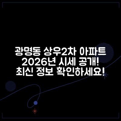 여러분, 이런 경험 있으신가요? 자산 투자에 대한 고민은 누구에게나 있는 것 같아요. 특히 경기도 광명시 광명동 상우2차 아파트 2026년 1월 시세를 고려하면서 ‘지금이 적기일까?’ 하는 질문이 머릿속을 떠나질 않죠. 저도 예전엔 매물 보고 한참 고민하던 때가 생각나요. 그래서 이번 글에서는 그 고민을 조금 더 쉽게 풀어볼게요!